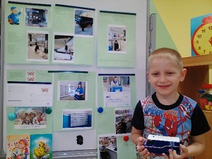 Мама Владика Светлана Евгеньевна, работник почты, сфотографировала почтовые помещения, вместе с Владиком подготовила мини-газету, которую он презентовал на занятии в группе. Каждый из детей сделал конверт, нарисовал картинку и опустил письмо для своего друга в наш почтовый ящик. Почтальон принес письма всем ребятам.